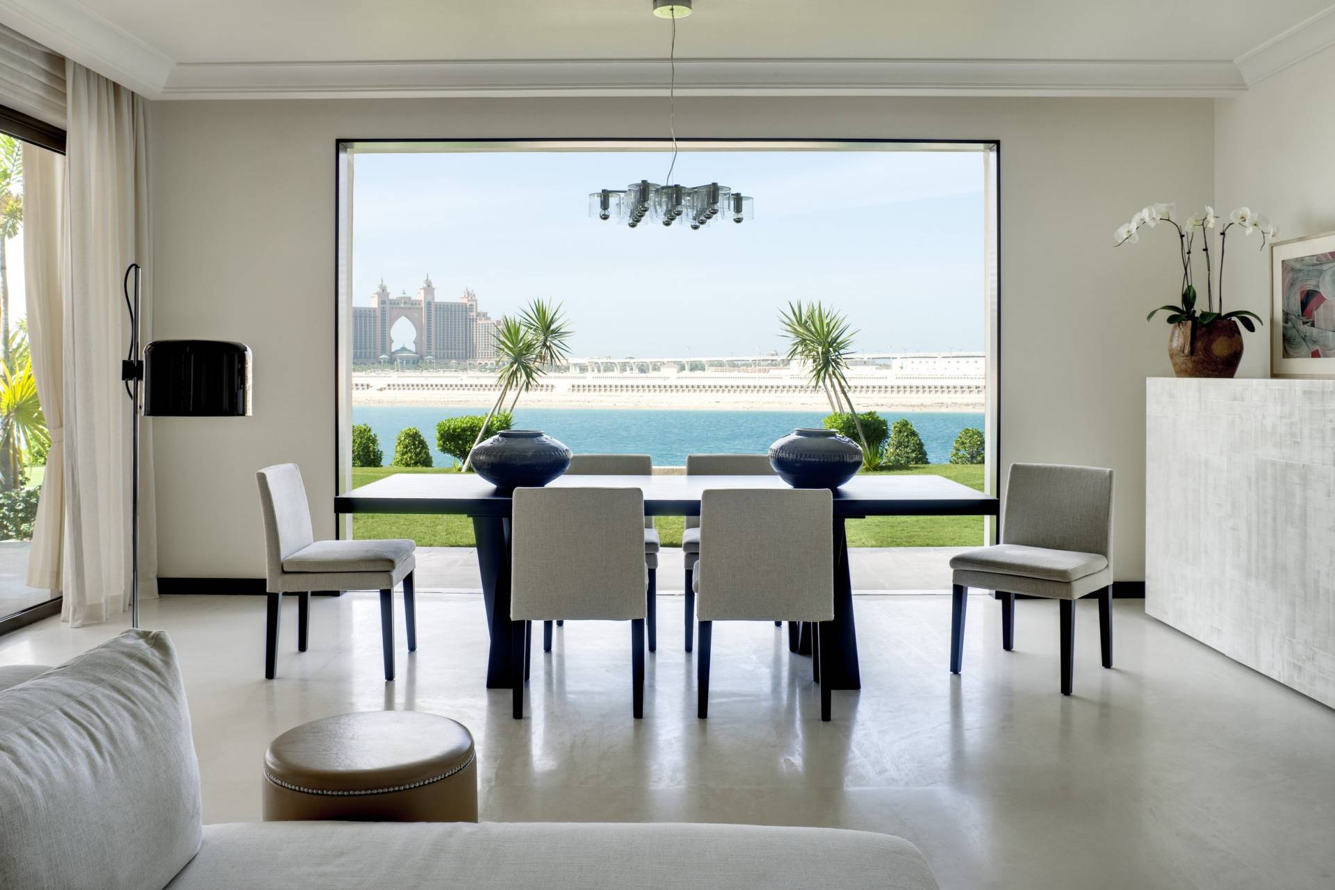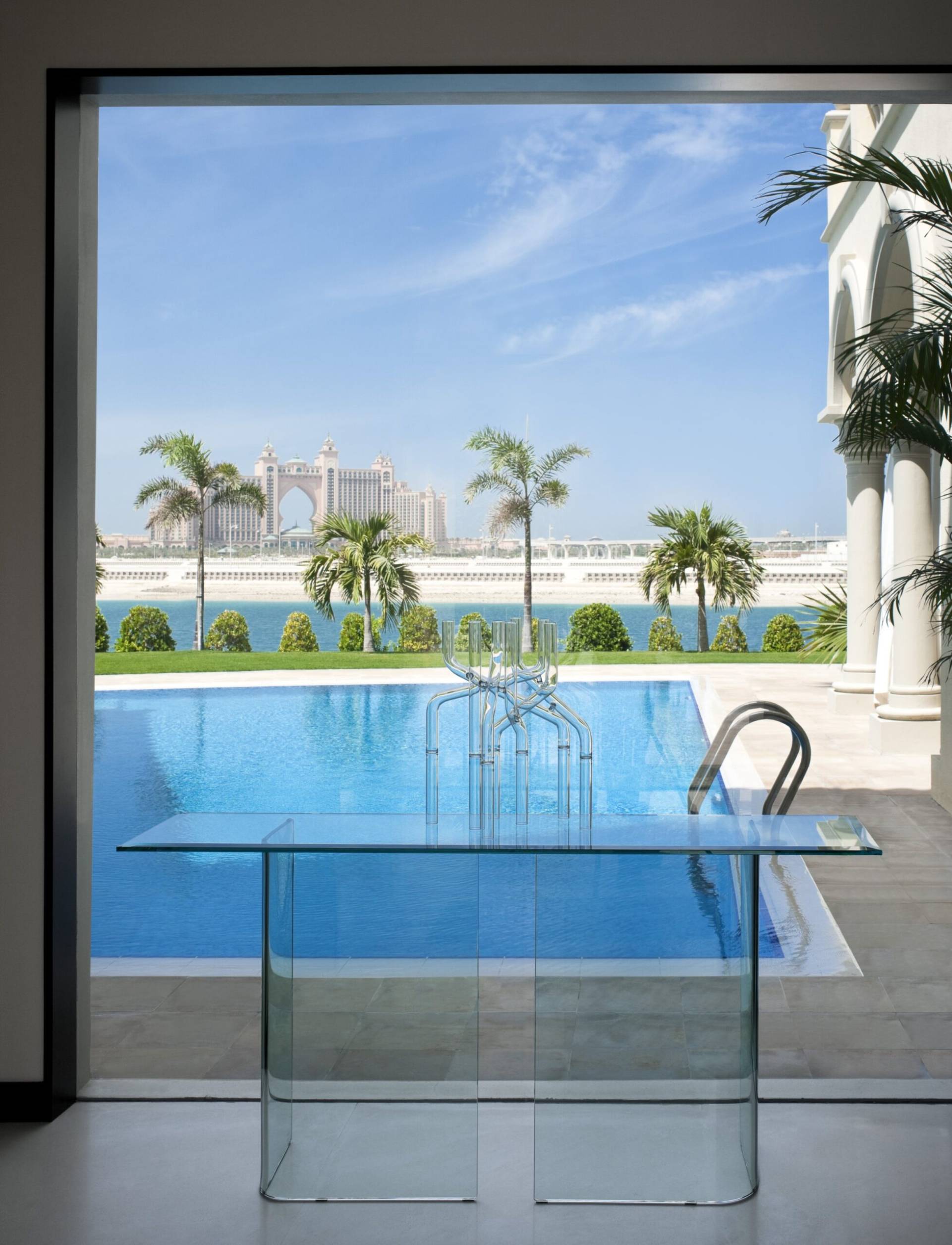 Within Dubai’s prestigious Palm Island complex, we meticulously crafted an airy and sensual haven, epitomizing contemporary luxury across the sprawling expanse of the villa’s 10,000 square feet. Drawing inspiration from the abundance of light and the surrounding sea, the interior design seamlessly integrates with the breathtaking panoramic vistas visible from every corner and reflects a harmonious connection to the maritime environment.